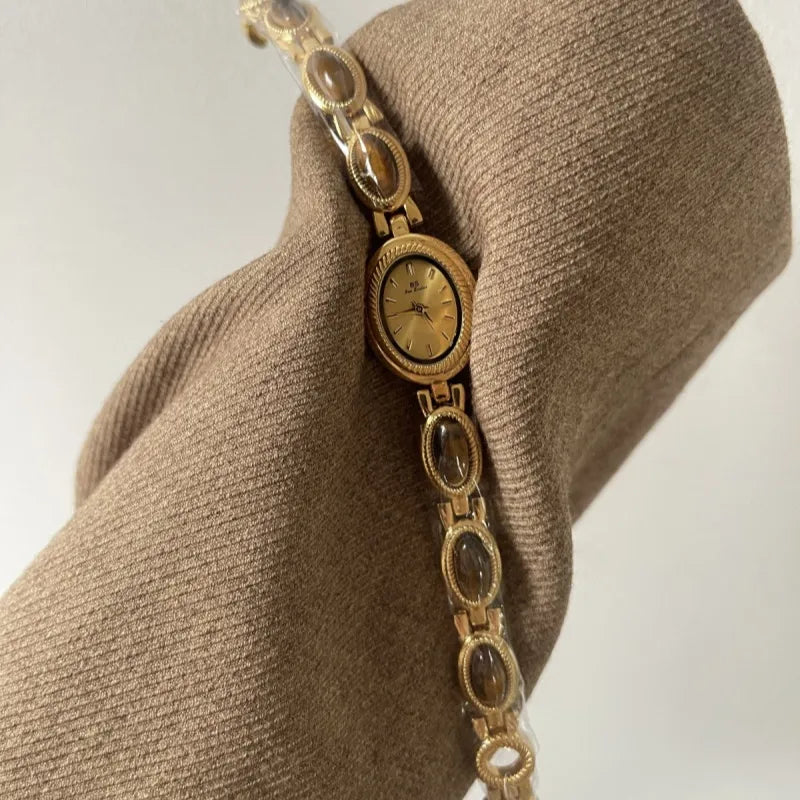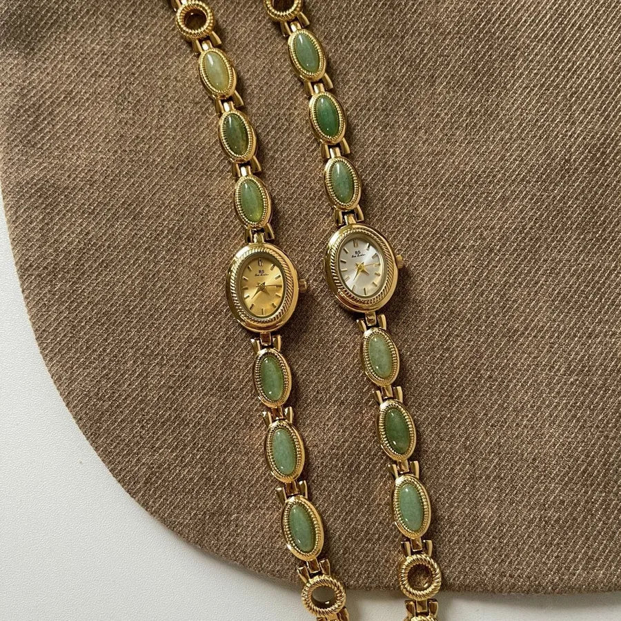 Grace meets glamour in a petite oval silhouette. The Nouravi Delphi Jade Oval Watch features a polished oval-shaped dial adorned with delicate diamond-style accents and a jade-tone finish. Set on a refined bracelet-style strap, this timepiece balances vintage elegance with modern sophistication—ideal for a standout wrist from brunch to evening events.