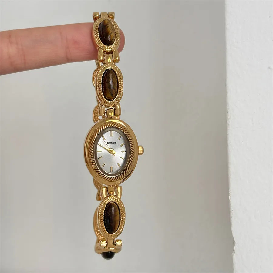 Embrace timeless elegance with a touch of nature. The KUNUR Jadeite Elliptical Bracelet Watch features a sleek elliptical dial adorned with genuine jadeite, offering a sophisticated yet minimalist design. Its bracelet-style band ensures durability and comfort, making it a versatile accessory for both casual and formal occasions.